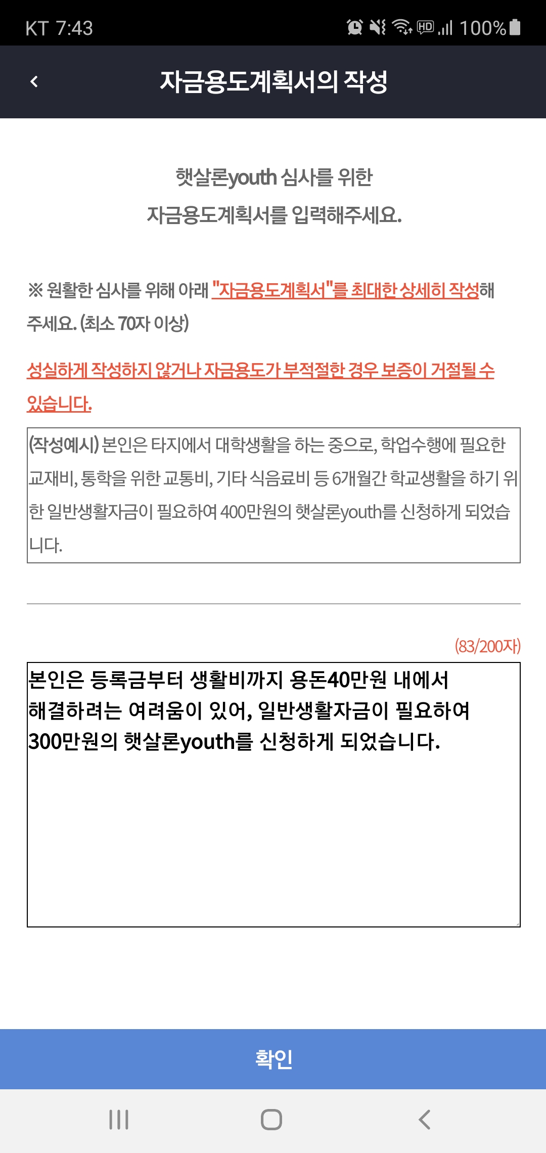 이렇게 자금용도계획서를 작성해서, 내가 왜 받아야 하는지 나름의 어필을 한다.